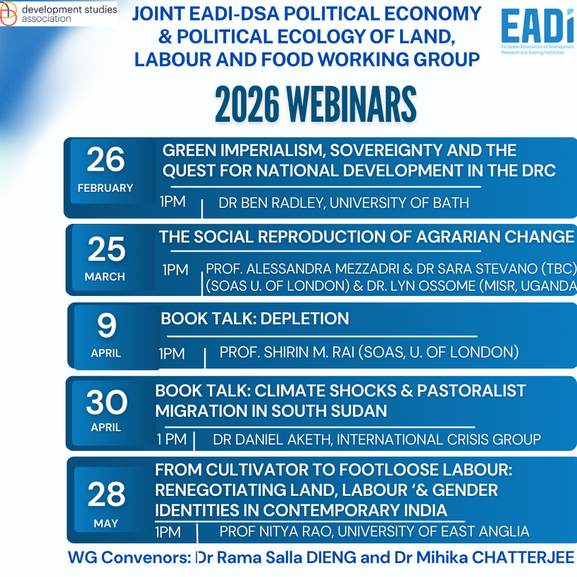 The social reproduction of agrarian change, 25 March, 02 - 3:30 pm CET Read more and register