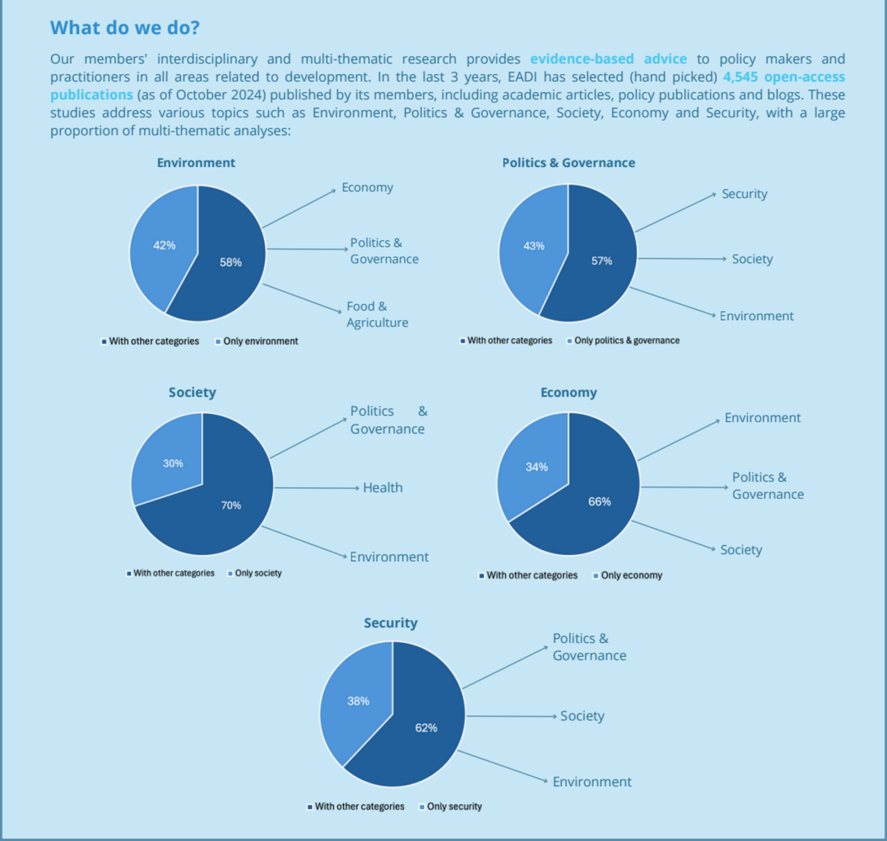 In the last 3 years, EADI has selected (hand picked) 4,545 open-access publications (as of October 2024) published by its members, including academic articles, policy publications and blogs.